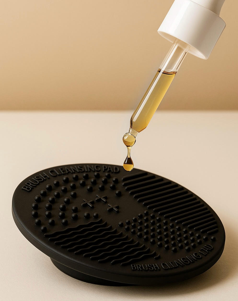 - Add 1 dropper, soak 10–15 min (dense brushes may need a second soak).